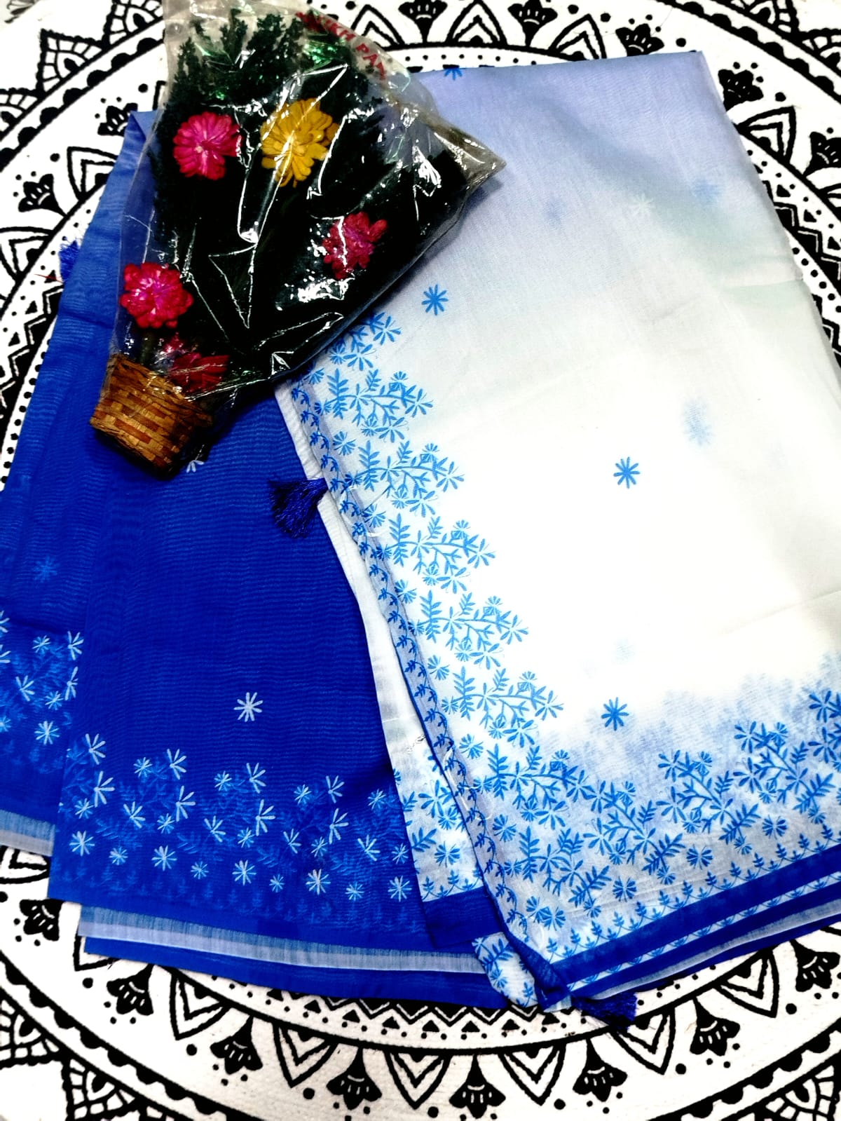 হাফ সিল্ক চান্দেরি শাড়ি