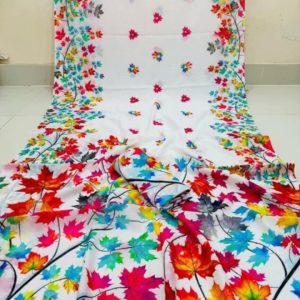 সাদা সেঞ্চুরি পাতা সিল্ক শাড়ি