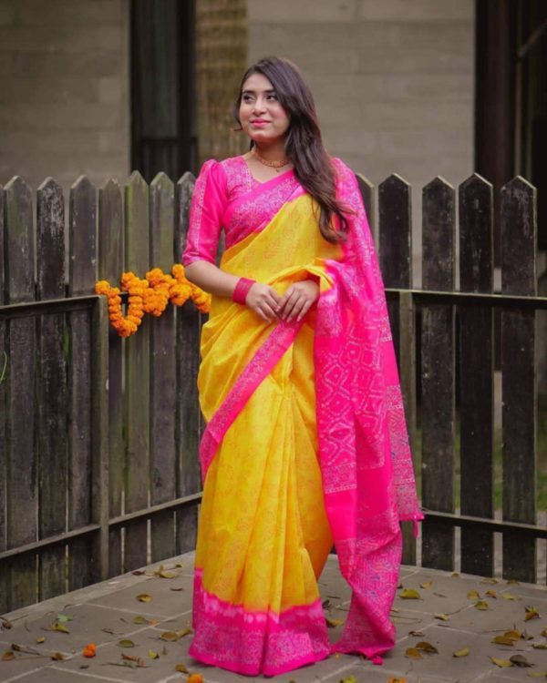 হাফসিল্ক চান্দ্রিরা শাড়ি সাথে ব্লাউজ পিছ ফ্রি